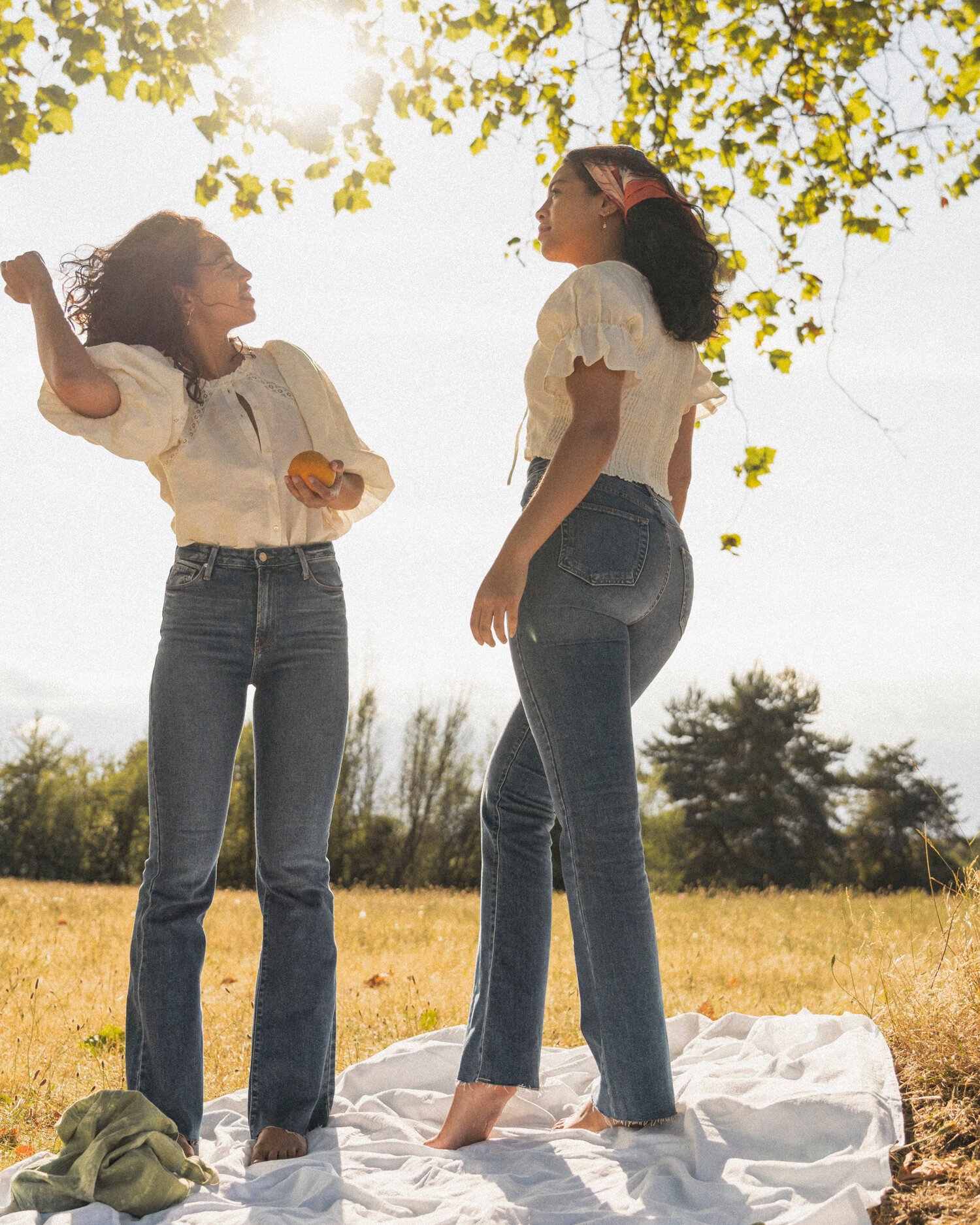 Nothing revolutionary here folks, just a classic way we’ve worn our jeans summer after summer. This look is so easy to recreate with things you may already have in your closet - a puff-sleeve linen top and jeans. Bonus points if you have a scarf to add to your look too!